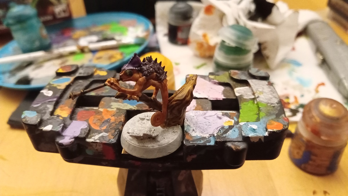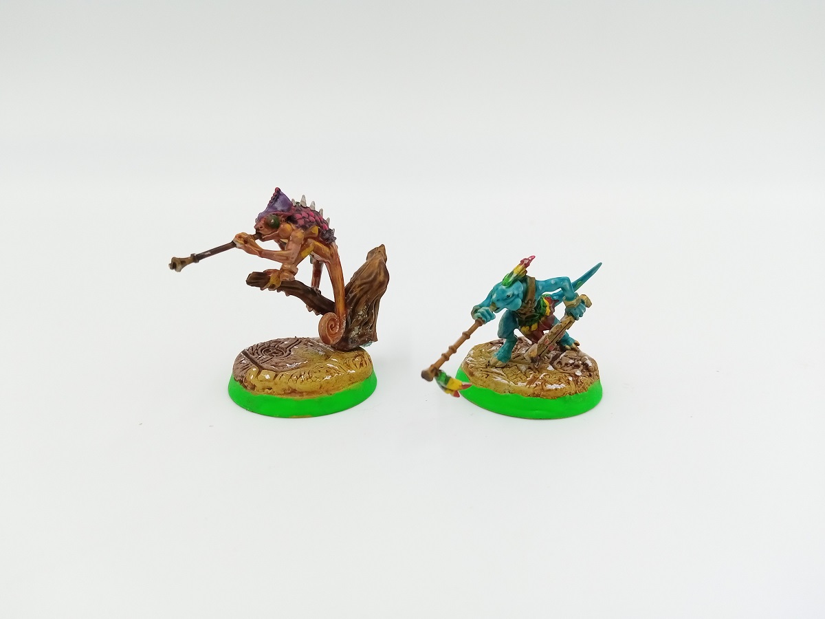 For the skink’s scales I built up gradual layers of green, beginning with Moot Green, AK Fluorescent Green and Flash Gitz Yellow. I was particularly pleased with how these ended up.