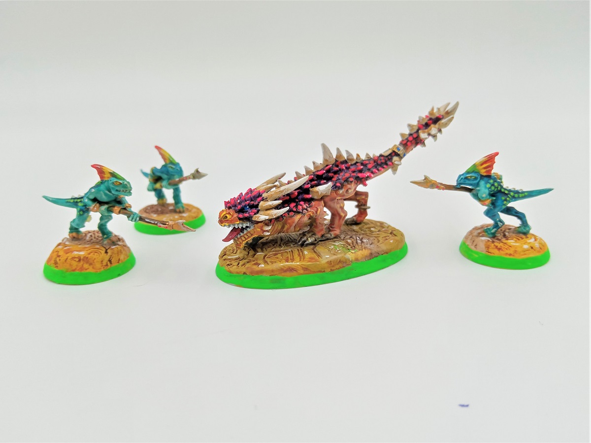 I was really happy with how the final warband turned out. The Skink Handlers and the Razordon make a great addition to the Direchasm set to bring my warband up to the 1,000 point maximum for an entry level group of fighters.