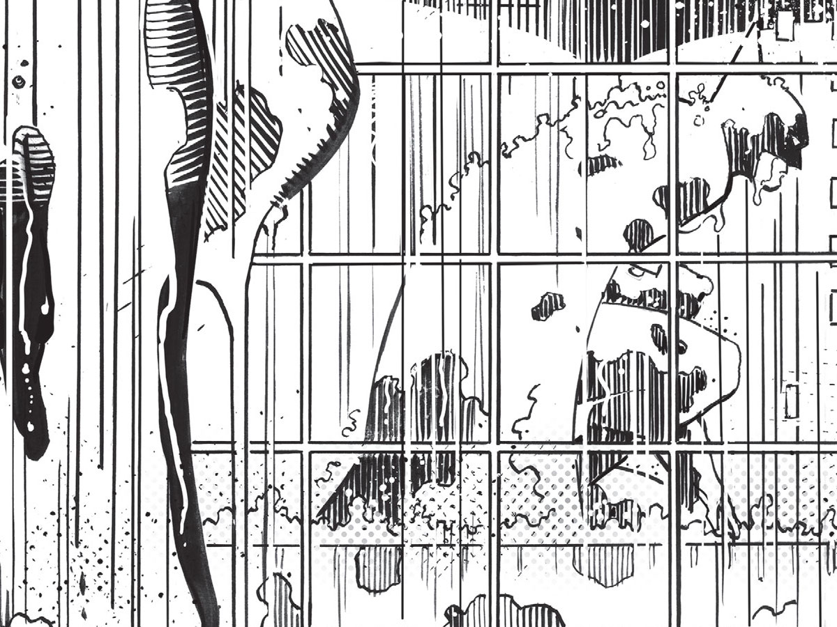 Next up, Nick Derington returns to the world of Batman for a solo writer-artist showcase. This is fascinating, because it gives us virtually no context and just plunges us into a particularly terrifying night in Batman’s life. On the trail of a kidnapped boy, he must invade the lair of the Chessmen Blanc, a mysterious cult of Chess-themed warriors. As he fights his way through armies of themed warriors to the boy, the truth about the child’s identity is revealed with a dark twist. And Derington’s art is brilliantly detailed even in black and white.