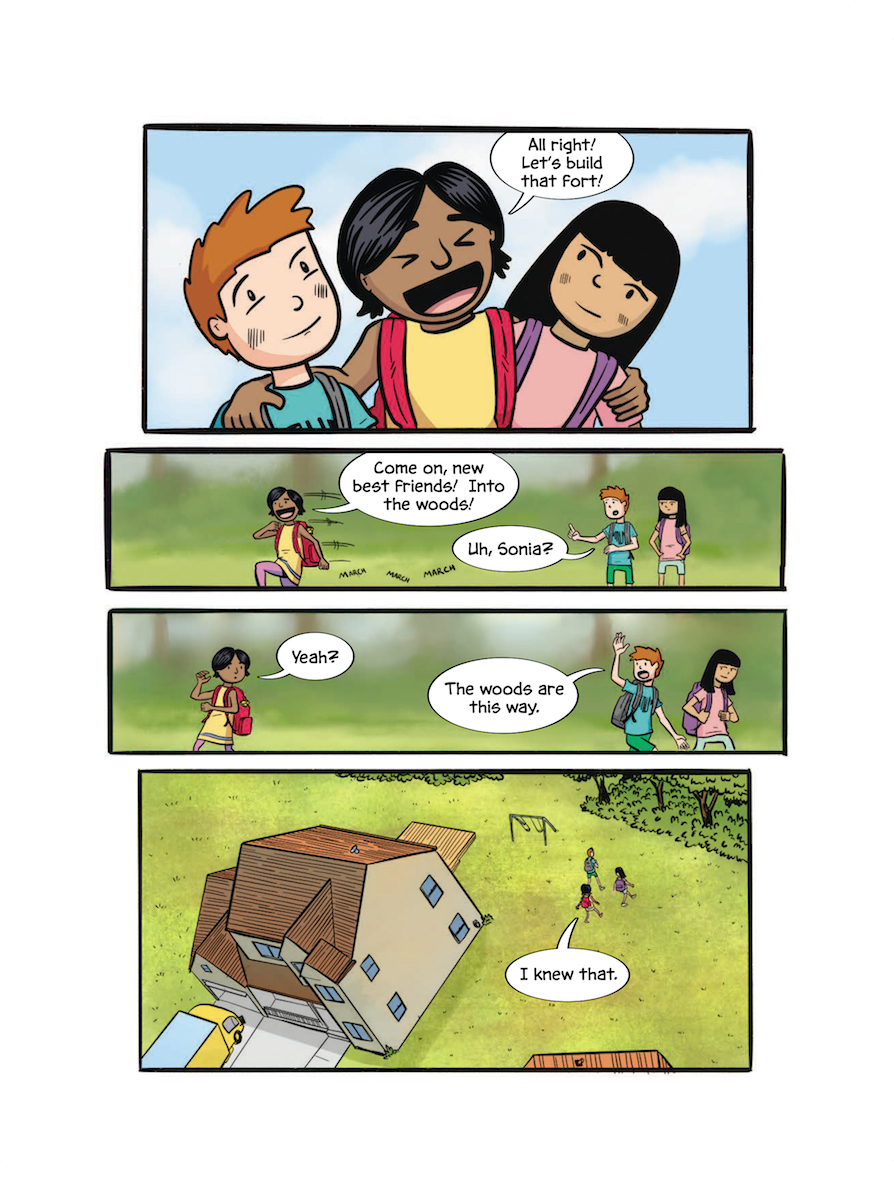 The story focuses on a trio of sixth graders—brash and energetic Duncan, his tomboy best friend Alex, and new kid in town Sonia, who has just arrived from Metropolis into the sleepy suburbs with her family. The two friends quickly take Sonia into their group, and they decide to spend the summer building a fort in the woods. Sonia also quickly tries to get her new friends to join her in being Superman’s biggest fan. There’s just one problem.