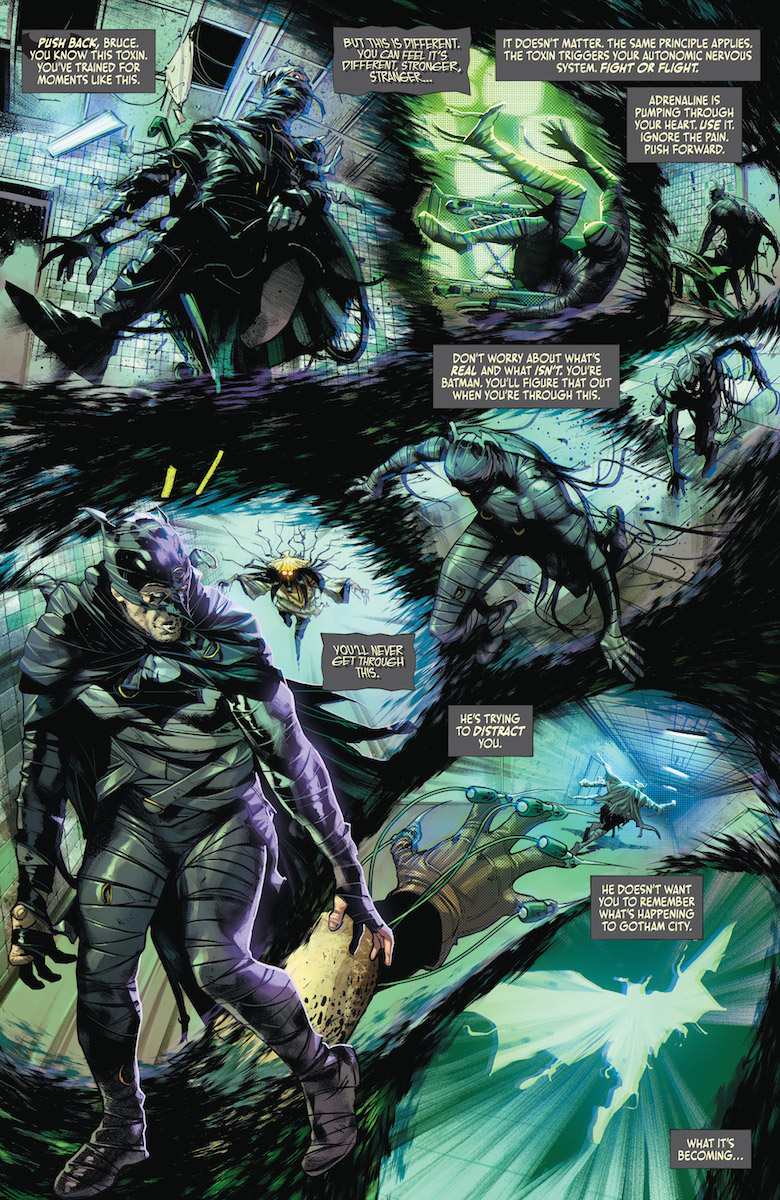 But I was much more intrigued by the other main story this issue, with Ghost-Maker and Harley. First of all, Ghost-Maker is one of the most entertaining new characters we’ve seen in comics in a while. Essentially an obsessed supervillain whose MO leads him to do good things, this issue reveals how deep his obsession with Bruce goes—and it’s kind of hilarious. But he and Harley’s sparring session is interrupted by the new wild card known as the Gardener, who has knowledge of Poison Ivy’s whereabouts and how dangerous she’s become to Gotham—as well as a surprising past link to the anti-hero. Tynion writes a great Harley, and I’m very excited to see how her relationship with Ivy develops in this story. This Gotham is just as chaotic as it usually is, but the new blood is giving it a shot of energy.