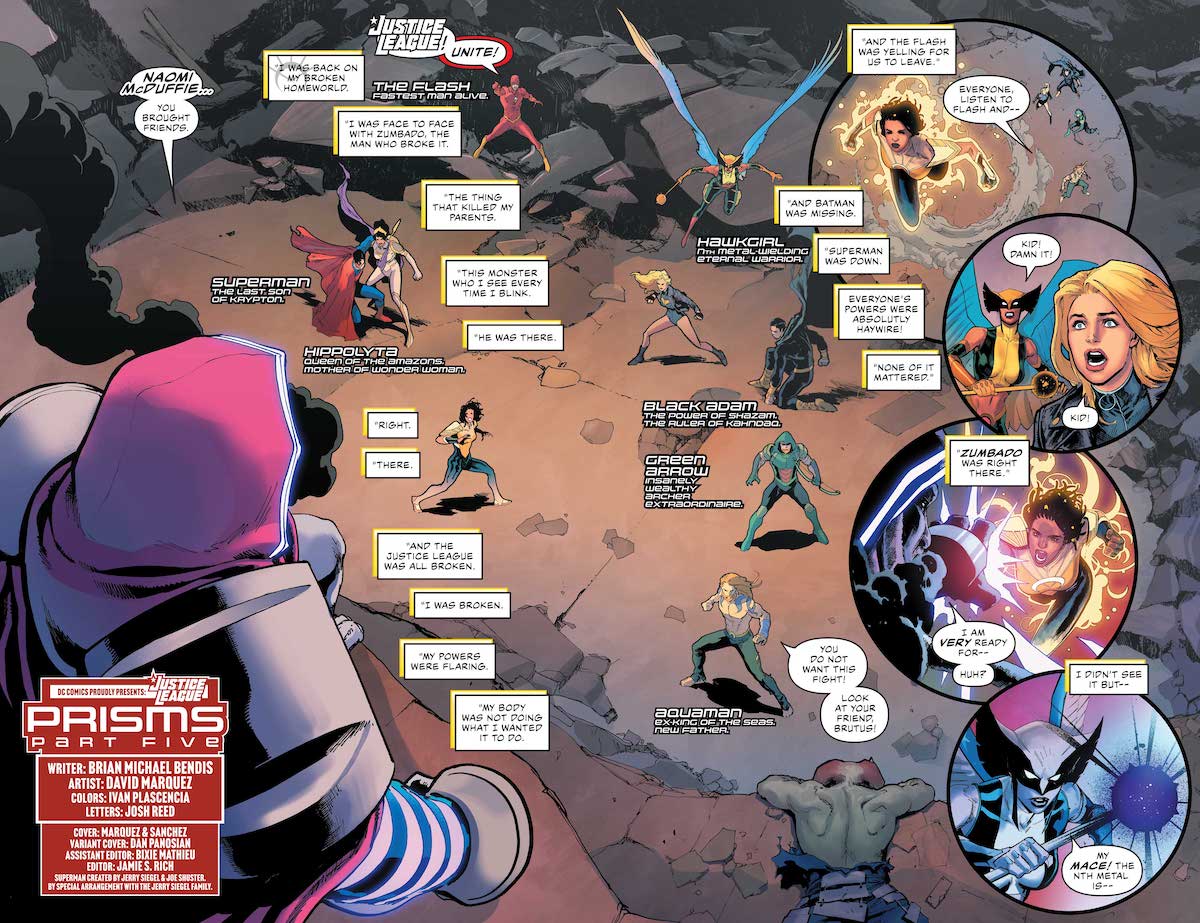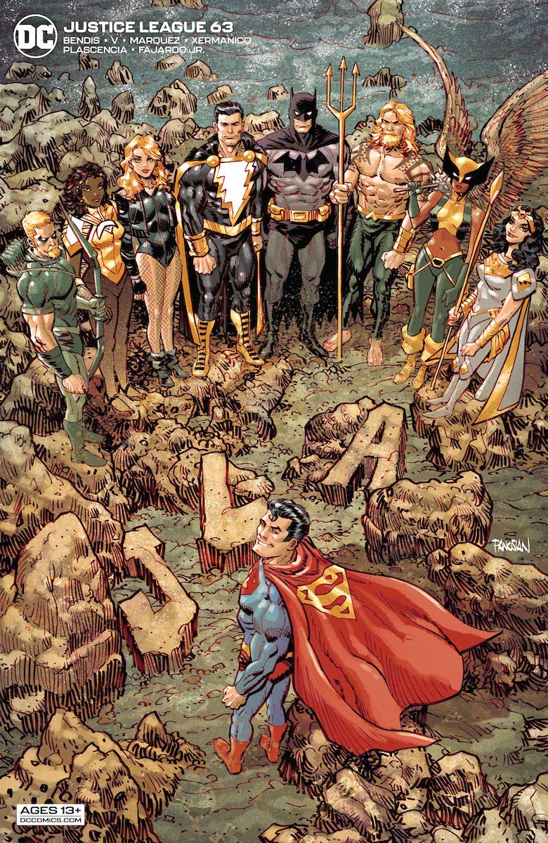 Justice League #63 – Brian Michael Bendis, Ram V, Writers; David Marquez, Xermanico, Artists; Ivan Plascencia, Romulo Fajardo Jr, Colorists