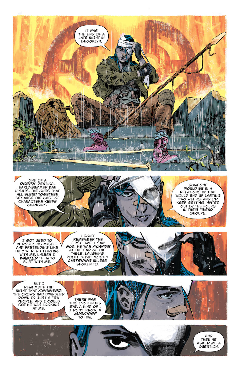 Ray: There is probably no one in comics riding a hotter streak right now than James Tynion IV, especially in creator-owned books. He’s got all-ages fantasy (Wynd), high-intensity horror (Something Is Killing the Children), and dense conspiracy suspense (The Department of Truth). Now, he adds a highly inventive suspense thriller to that portfolio with this pitch-black thriller from Black Label. We open with a strange flash-forward to a one-eyed woman talking about the first time she ever met a man named Walter—an odd man obsessed with finding out how she thinks the world will end. They drift apart, and she doesn’t think much about him—until she receives an e-mail inviting her and a bunch of other acquaintances to a large lake house.