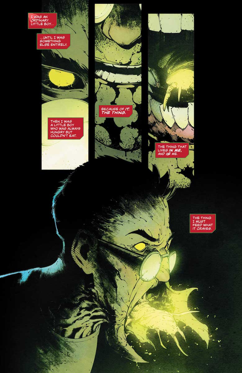 Then there’s the very odd backup, by writer-artist T.Rex (who I believe is new to DC). This focuses on Vile as he arrives in Gotham and settles into building his power, with flashbacks to his troubled youth. Unlike the main story, this one leans into an old-school horror vibe and gives us some pretty disturbing scenes of him as a murderous child. Rex’s art is excellent, reminding me a little bit of John McCrea, but there’s really no one likable or sympathetic to latch on to, and just about everyone is either a doomed victim or a monster.