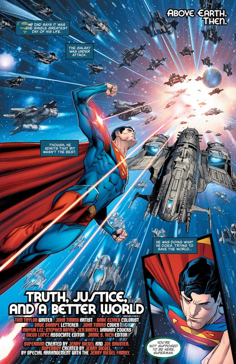 Superman, Son of Kal-El #1 – Tom Taylor, Writer; John Timms, Artist; Gabe Eltaeb, Colorist