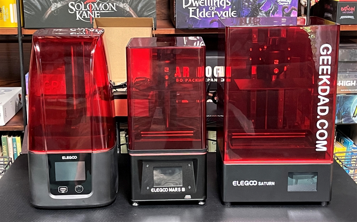 After assembling the printer, I thought I’d see how it looked side by side with the other ELEGOO MSLA printers I’ve worked with, the Mars Pro and the Saturn. Here are all three: