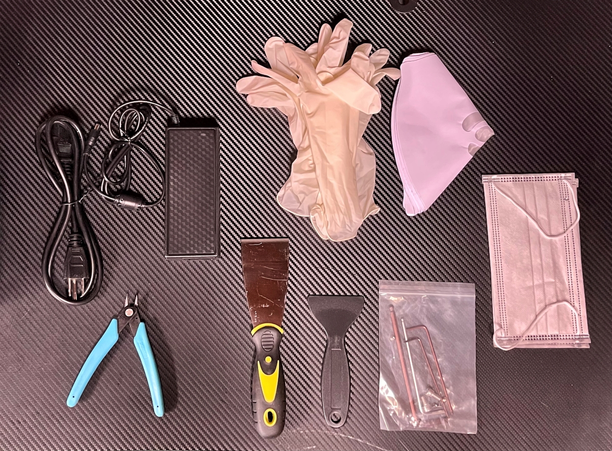 ELEGOO continues their excellent practice of including a robust tool kit with their printers. Besides the power supply for the printer, you’ll find Allen wrenches, a metal scraper to remove prints from the build surface, a plastic scraper to remove resin from the FEP film, disposable filters for pouring resin back into the bottles, nippers, and even a few nitrile gloves and face masks. The gloves certainly won’t last you for more than a few prints, but it’s enough to get you started. Sadly, my tool kit was missing the USB drive that would normally accompany an ELEGOO printer. However, as I have plenty of USB drives from previous printers, this wasn’t a big deal. I did inform my contact at ELEGOO, and had I been a customer, they would have gotten a replacement drive to me right away.