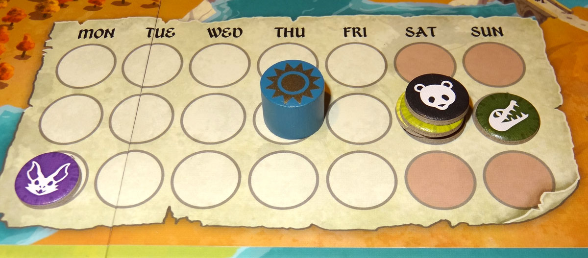 After each player has had a turn, advance the day marker, triggering any effects if you reach a timer token.