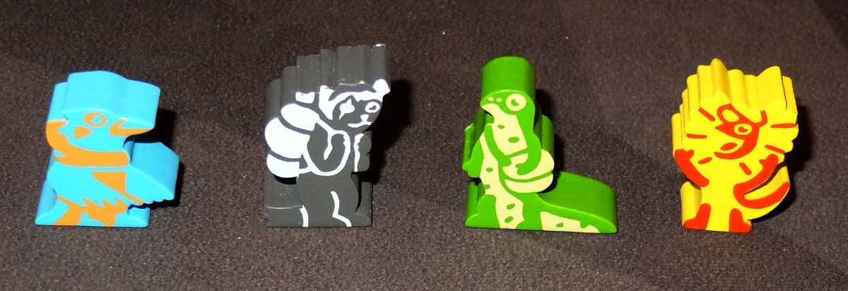 The meeples are cute: they’re custom shapes with an additional single color painted on them, to match the character portraits.