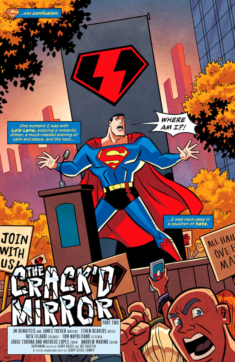 Ray: The first episode of this cartoon sequel was a good place-setter, but the second issue explodes with a high-octane storyline that still maintains a great deal of strong character work. When we last left off, Superman had disappeared right in the middle of a date with Lois Lane—only to be replaced by the ruthless Overman, son of Vandal Savage and leader of a Nazi dictatorship. And that means… yep, our Superman has found himself in a Nazi hellhole. As he’s deemed an aberrant by Brainiac’s forces, it was great to see him not succumb to his anger and work not just to protect himself, but to protect the world that has been essentially taken hostage by evil and free its citizens, even as many of them side with the villains and cheer on his attackers. Lots of painful commentary about just how easy it is to get ordinary citizens to go along with an evil regime, as well.