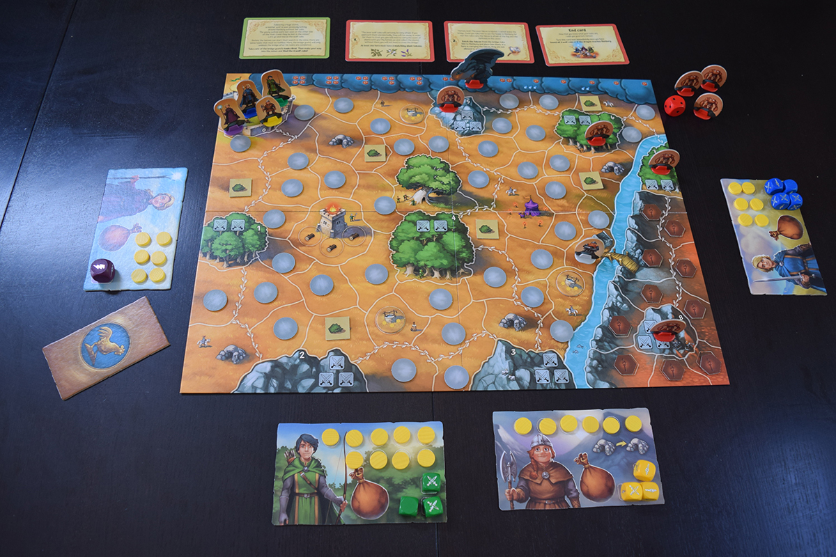 The game ends when either the brave companions have rescued the three wolf pups, or the dragon has reached Rietburg. In either scenario, flip the “end” card and read the finale of the game.