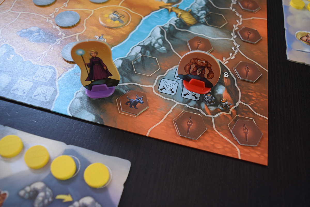 That last point is important to me when it comes to kid oriented games. I like my girls to feel like they have important choices in a game and that there isn’t always an obvious route to take. Andor: The Family Fantasy Game has this in plenty. On your turn, will you move a single space at a time, flipping fog tokens as you go, or will you use all your sun discs at once to travel several spaces across the board? Will you fight the Gor near you or continue to complete the task? In fact, before the game even begins, the kids have a significant decision in which character to play as. If only two of us are playing, what duo will work best together. Do you want to be more combat oriented? Then take the warrior or magician. Or perhaps you want to move quickly around the board. Then the dwarf or archer is a better choice. Providing significant decisions that can affect the game outcome is a key component to transition children into more complex games and Andor: The Family Fantasy Game provides that from start to finish.