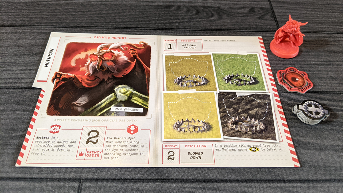 Mothman likewise doesn’t use an overlay. Rather, it has an Eye of the Mothman token and four trap tokens.