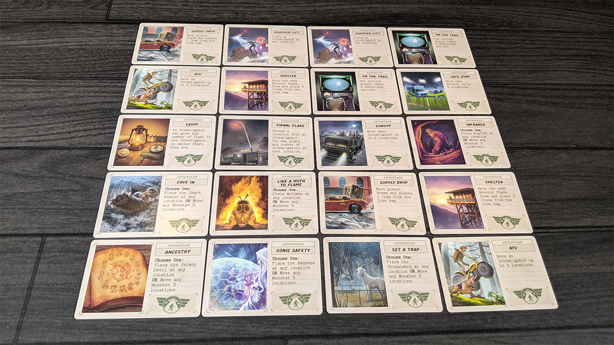 But the fact that they give you a group of monsters that have varying degrees of difficulty is one of the great design elements of the game. Go ahead and start with the Banshee and Chupacabra and, yes, expect to finish with a victory, but also with an understanding of the game. And then mix it up: select any two monsters at random and see what happens (spoiler: you’re maybe 50-50 to win.) Then try again with three. Or even four. You’ll be getting the full cooperative experience at that point, including losing more often than you win.