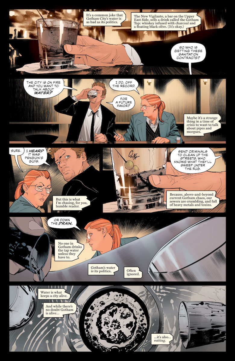Ray: Things go from bad to worse in Gotham in this issue, as the Scarecrow isn’t the only threat facing Batman. The mysterious Vile has been defeated, but he’s left a terrible legacy down in the sewers—and it’s about to hatch. Mayor Nanako has been chased out of his office by a mad villain seeking to assassinate him, and now he and Batman are separated by rock walls in the sewers as they battle to escape before it’s too late. Tamaki has done a good job of separating these two narratives since the start of the run, giving both characters their own voice without demonizing either of them. Now, separated by inches and forced to rely on each other to survive, this feels like the run coming full circle.