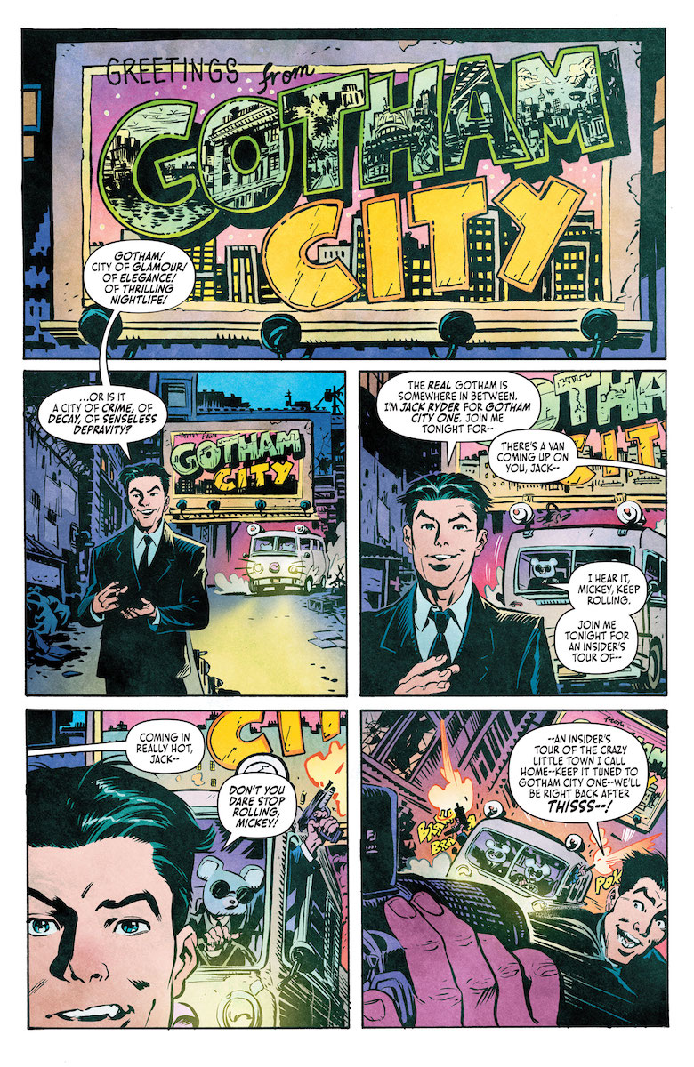 “A Better Mousetrap,” with Anthony Marques on art, gives Batman the spotlight. As Batman chases the Blind Mice Gang, one of many original villains in this version of Gotham, he reflects on his decision to become a special consultant for the GCPD and give up his independence as a vigilante. It’s an interesting status quo for Gotham—deciding to work within the law to try to clean up the law, as we see him take on corrupt officers even before he’s official with the GCPD. This Batman seems familiar, but there are some fundamental differences here.