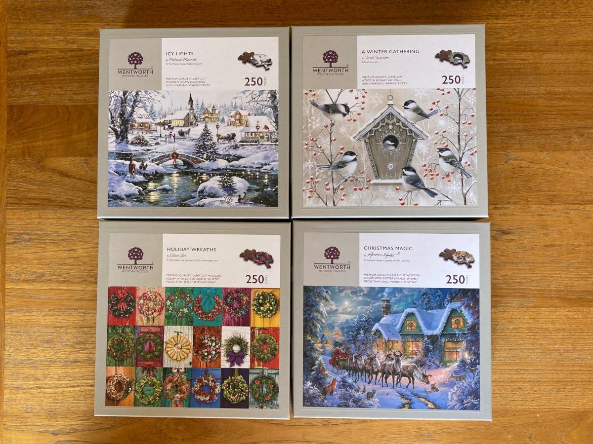 Recently I was able to try out some wooden laser-cut jigsaw puzzles for adults (or older children) made by a company called Wentworth Puzzles. They’re based in the UK and have a very large selection of puzzles in all sorts of designs. There are hundreds to choose from. Whatever your visual style, they are likely to have a puzzle to match. You can order many of the puzzles in multiple numbers of pieces, too, depending on the size of the challenge you’re looking for, and your budget. Depending on the style, the puzzles come in sizes from 15 pieces to 1500 pieces, with prices to match, ranging from $12.50 to $289.00. The smallest ones are perfect stocking stuffers, while the largest ones will keep a family busy all weekend.