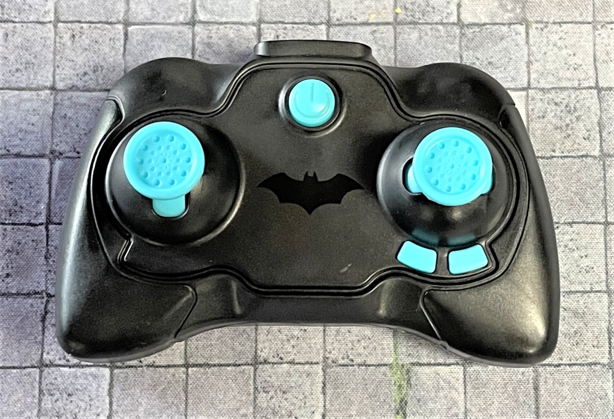 The motor on the All-Terrain Batmobile RC is surprisingly strong. I found that I had to ease way off of the stick on the remote to avoid popping wheelies. There is a 100-foot range between the controller and the Batmobile, and the remote will give a warning signal if the Batmobile is getting out of range.