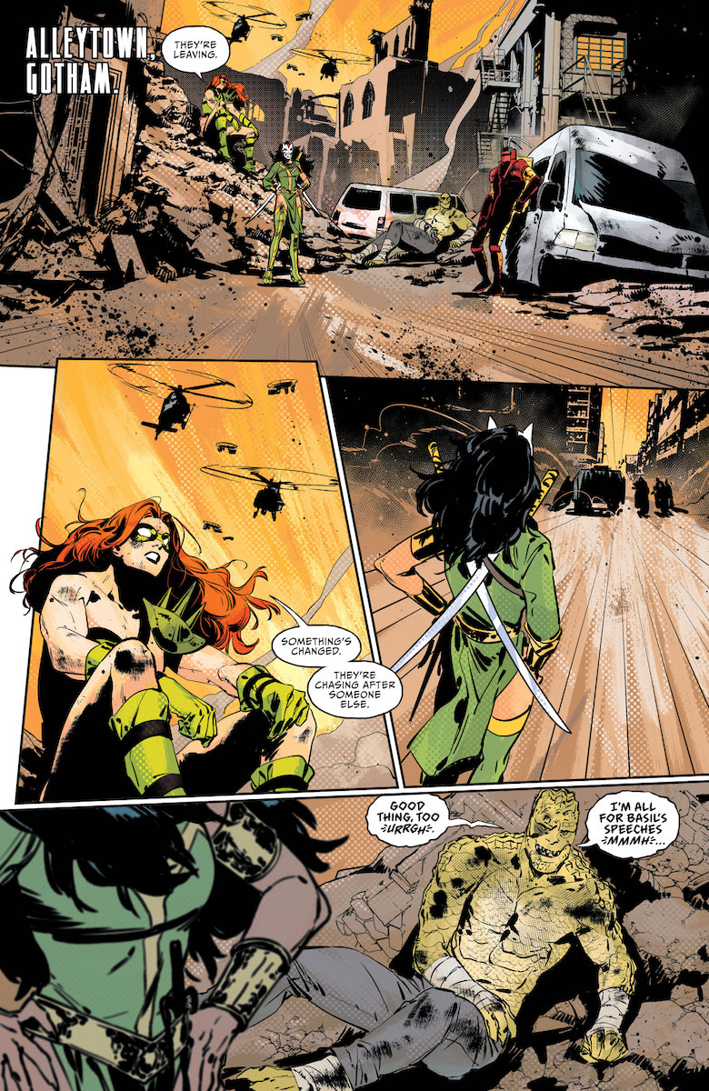 Ray: Ram V’s part in Fear State wraps up this month, along with his Catwoman run as a whole. It’s been a great ride, with probably my favorite Selina status-quo in a long time. By reinventing her as a champion of the underdog and surrounding her with a new status quo in Alleytown, it’s paid tribute to what comes before while also introducing many new elements. The last arc has focused on the Magistrate’s siege of Alleytown, as Selina tries to keep her friends alive while also delivering the “seed” Ivy to safety where she can be reunited with the more ruthless Queen Ivy. Part of what makes this run so much fun is how Selina works with both the heroes of Alleytown and the villains who have been able to switch sides. Characters like Croc, Knockout, and Cheshire have provided valuable backup, and even Riddler has worked as mission control since Selina saved him from capture early in the run.