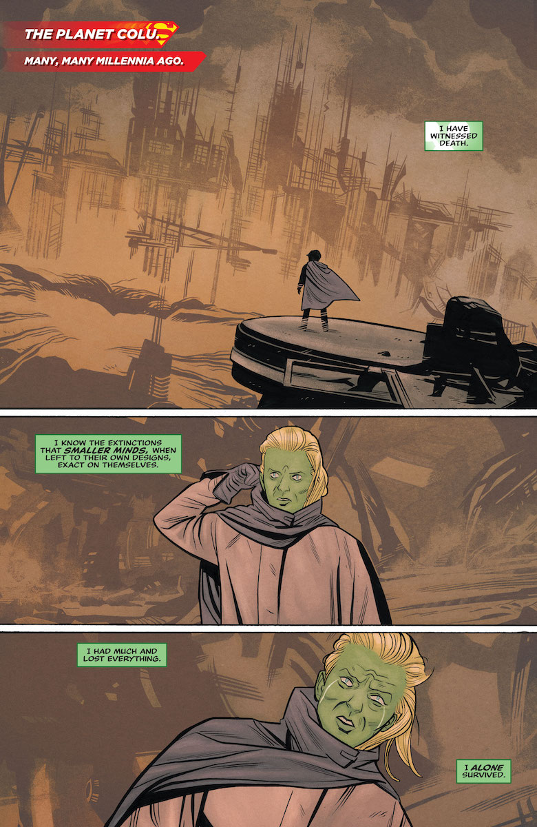On Earth, Lois has cut a devil’s bargain with Luthor as the criminal mastermind claims to be able to locate Kandor and communicate with Superman. I’m usually not a fan of the crazier takes on Luthor, as I prefer his more coldblooded businessman characterizations. Here, though, he’s hilarious—a complete wild card whose ego is so big that it overwhelms everything, even his own sense of self-preservation. Not only doesn’t he care if he attracts Brainiac’s attention, he’s looking forward to it because he wants a rematch. The last act of this issue is incredibly tense, upping the scale of this adventure and bringing the two worlds closer together. With only two issues to go, it feels like the pace is just about perfect. We’re heading into a spectacular last act that feels a lot like the structure of a major Hollywood movie. This generation of actors has passed, obviously, but it feels like WB could take a lot of notes from this for the next Superman film.