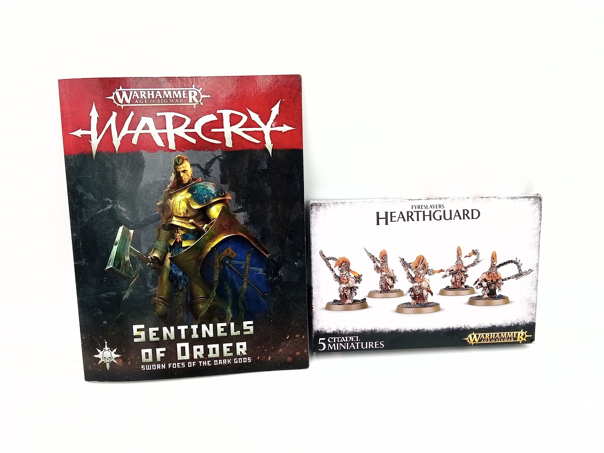 The armies in Warcry are broken down into four Grand Alliances: Order, Chaos, Death, and Destruction. Each order has an accompanying book with includes all the fighter statistics for the armies of that order. The Fyreslayers belong to the Sentinels of Order and that book includes 17 fighter types allowable in Warcry. For my warband I used eight different types of fighters.