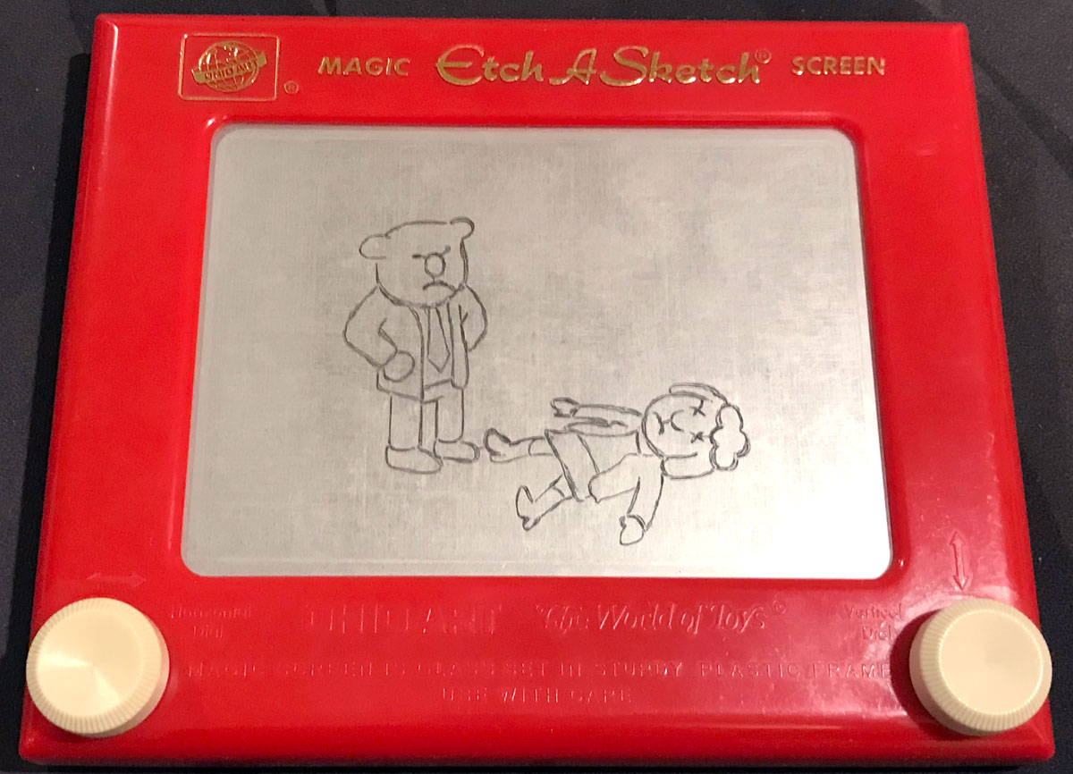About that age rating: most of the cases involve death (usually murder), and there are also references to drugs, alcohol, adultery, as well as some more abstract concepts like corporate conspiracy. Since I was the one reading the cards out loud, I tended to pass over some of these explanations when playing with my kid, but there’s no hiding the fact that people in this city were getting killed for all sorts of reasons, some of them very petty. The guy in a long coat flashing people (seen from behind) is back—your kids may or may not spot him or know what’s going on, but you should be aware of the possibility. My guess is that Europeans are generally a bit less prudish than Americans (the game is from a German publisher), so that may explain the age rating on the game; if this were an American TV show or movie, I’d guess it would get a PG or PG-13. That said, if you’re prepared to guide your kid through some discussions of ethics and morality, it is a lot of fun to play.