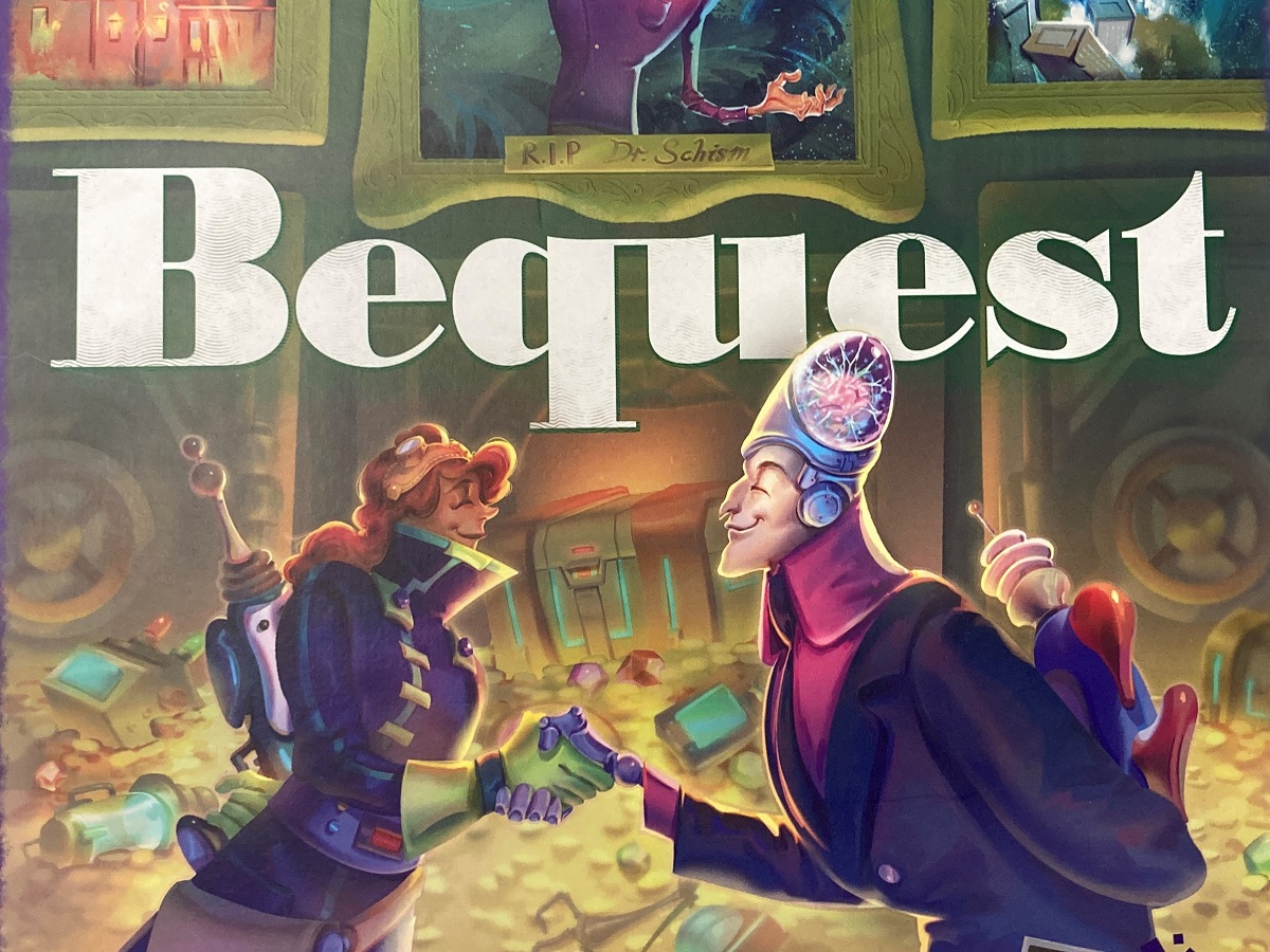 I really enjoy playing Bequest. In addition to the reasons I stated above, I love the theme. The idea that you are minions dividing up your former boss’ assets really fits the mechanics of the game, especially the ability to try and influence the decisions of other players. Since you can play Bequest in about 30 minutes, it makes a great choice for either starting or ending a game night or for a quick family game. There is no down time since players are always playing simultaneously, which keeps everyone engaged. If you like drafting and set collecting games, or would like to start playing these types of games, I recommend you play Bequest.