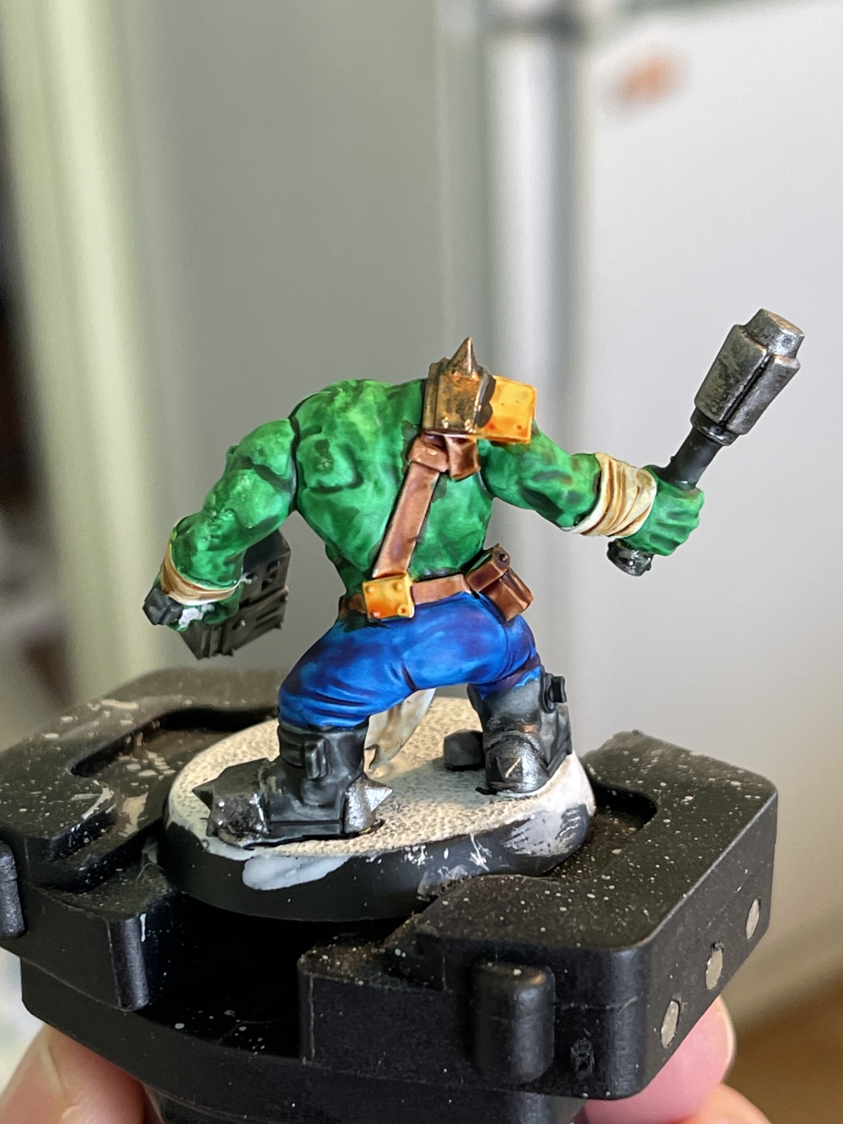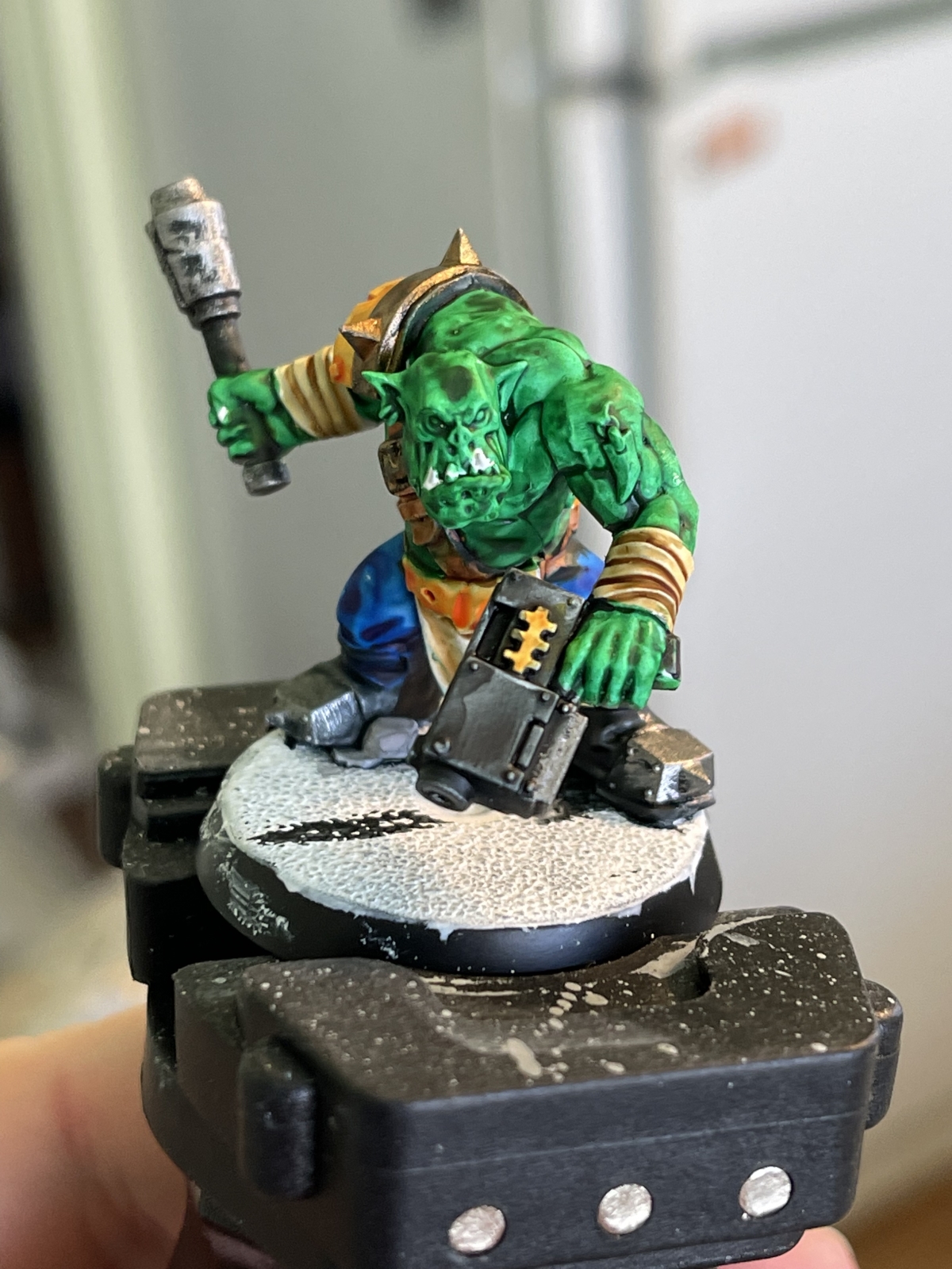 I decided to try one additional Ork painting test, this time using a paint-on primer, the Pro Acryl White primer. This was the end result: