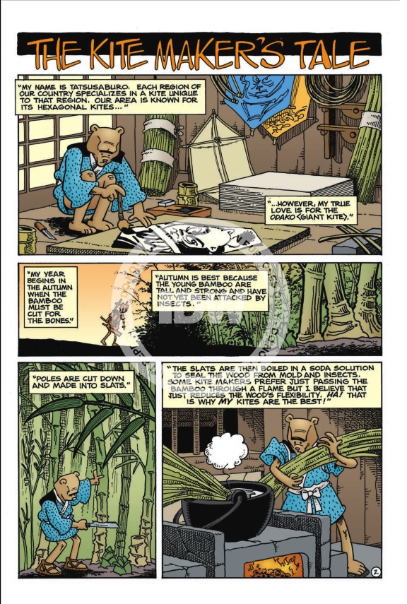 Tatsusaburo, the kite maker, will revel in telling us how much craftsmanship is behind each one of these giants, a true wonder. A bit I always enjoy when Stan Sakai decides to teach us something: the details are well presented and you just long to be able to make one giant kite yourself.