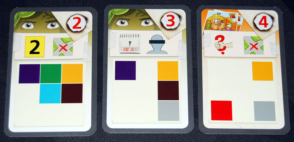 The other types of cards are “lab” cards, and provide some sort of evidence, and each one has its own method of deciphering.