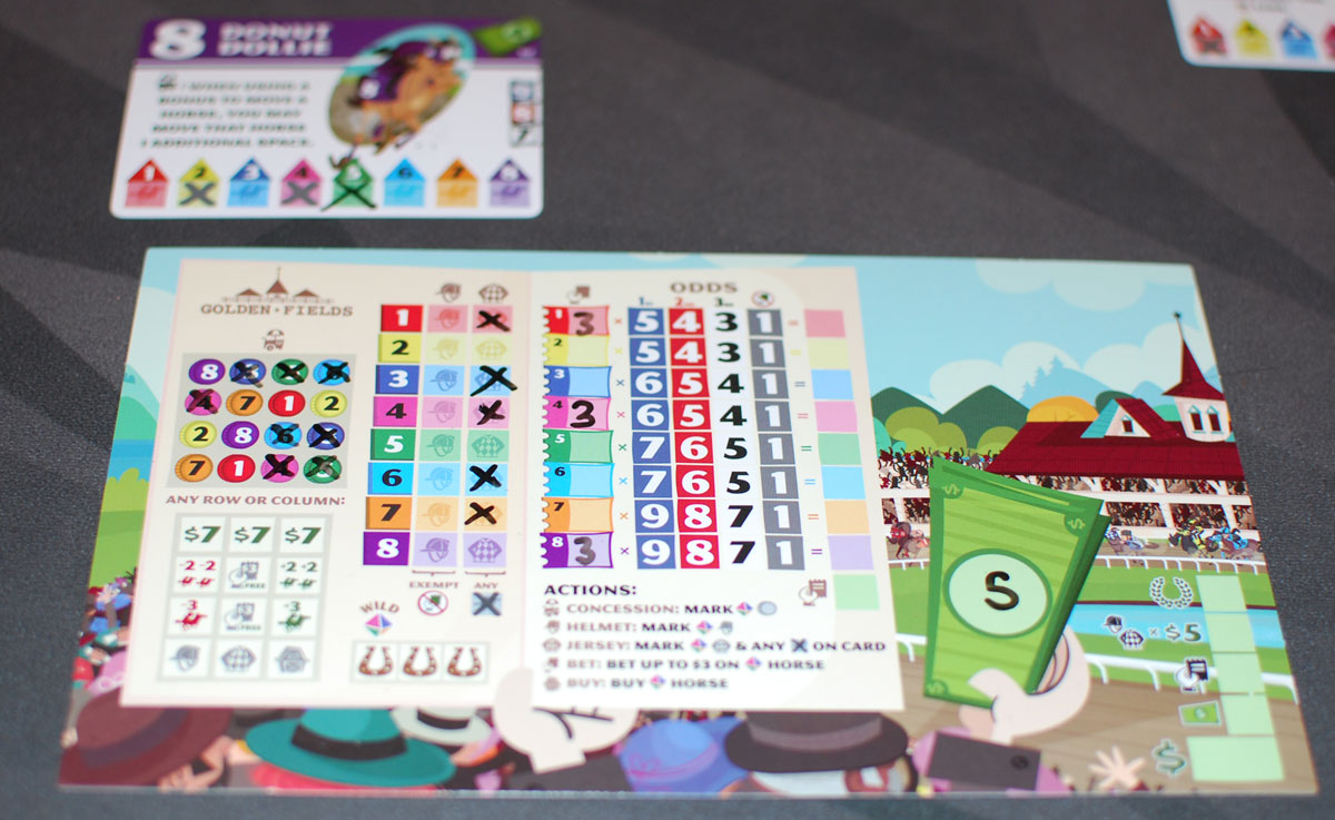Jersey: Mark off the jersey space for the active horse. You also add an X to that horse’s card for bonus movement.