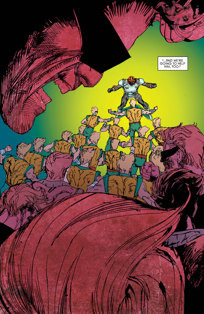 This final issue of the first volume pits Curtis against Reprise, a supervillain with the power to duplicate himself and a surprising weak point – his dupes shrink with each new clone he creates. It’s a fun fight scene, but it didn’t have the tension of the scenes in Alva’s corporate headquarters. As Curtis’ ally Barraki finds herself held hostage by Alva, she pulls a risky move to get free and engages in the best chase scene of the run. There are some surprising moves by other allies, great visuals, and a satisfying tie-up to the run as a whole and to the subplot involving the child accidentally injured by Hardware. Overall, I don’t think it hooked me quite as much as the recent Icon and Rocket series did, but it seems like all three of these and the new arrivals in wave two are leading up to something bigger. It’ll be interesting to see how the Milestone architects build a bigger shared universe here.