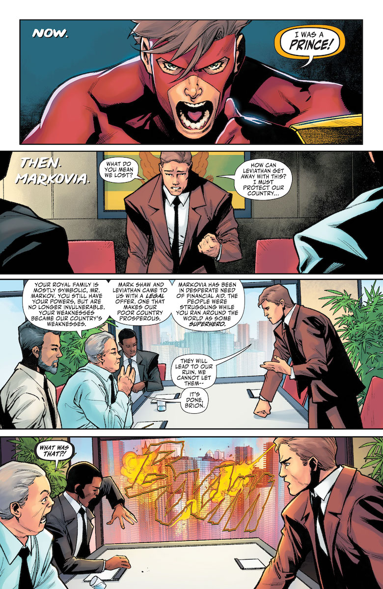 Ray: After seven chapters and a one-shot, it all comes down to this issue – and the finale of Shadow War does not disappoint. Last issue’s reveal that Geo-Force was the mysterious fake Deathstroke came out of nowhere but makes perfect sense in retrospect – he’s the only one who has reason to hate both the key players equally. His sister was manipulated and ultimately died because of Deathstroke, in one of the slimiest actions ever taken by a DC villain and one that makes many readers unable to accept his antihero turn even to this day. Then, much of Markovia was destroyed by Leviathan when Talia went to war with Mark Shaw, leaving Brion Markov a man without a country. Now driven to the point of insanity and determined to end both the Wilson and Al Ghul bloodlines, it hard to call him a villain – he’s definitely the least evil of the three – but he’s clearly so far gone that he’s the biggest threat here.