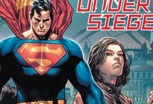 Ray: Let’s get it out of the way first—this is absolutely the most ridiculous comic DC has put out in a very long time. A lot of comics are ridiculous, but few embrace it the way this Daniel Warren Johnson Elseworlds pastiche does. The question is “What if the Justice League were dinosaurs?” and this comic answers exactly that. In another world, a doomed planet sends a child off in a rocket—except that this child is a tiny blue apatasaurus-man who is adopted by a kindly caveman couple and grows into a massive but gentle guardian of his people—keeping a a small village safe from the vicious predators surrounding it. And they are vicious. While humans seem to be the majority on this world, there are large and often intelligent and monstrous evolved dinosaurs around, hunting them for food—and sometimes, even sport, as another mysterious hero on this world soon finds out.