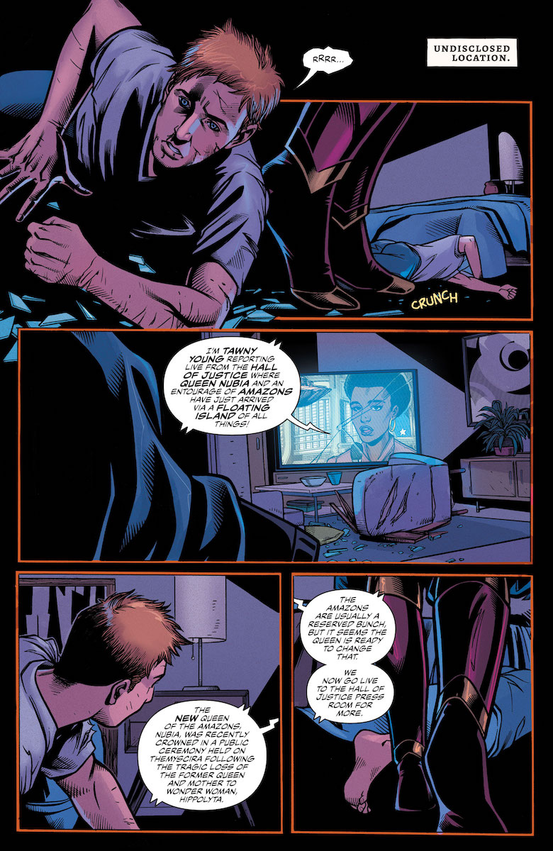 This issue juggles a lot of tones, and usually they work together pretty smoothly. The most charming part of the issue is when the Justice League meets the Amazon delegation. Some of these scenes are funny—like Bruce and a young Esquecida warrior discussing social media. A chat between Bia and Black Adam is surprisingly heartfelt. And Nubia and Hawkgirl have an epic sparring match that turns into a strategic discussion. But as Nubia prepares to make a stand against illegal deforestation in the Esquecida territory, a new enemy appears—and it seems like they have massive-scale plans that could end Nubia’s reign before it’s barely begun. Williams seems to be characterizing this second act as an international thriller, giving it shades of some of the best Black Panther runs at times. I was surprised to see DC give Nubia such a push recently, but it’s paying off in some great stories so far.