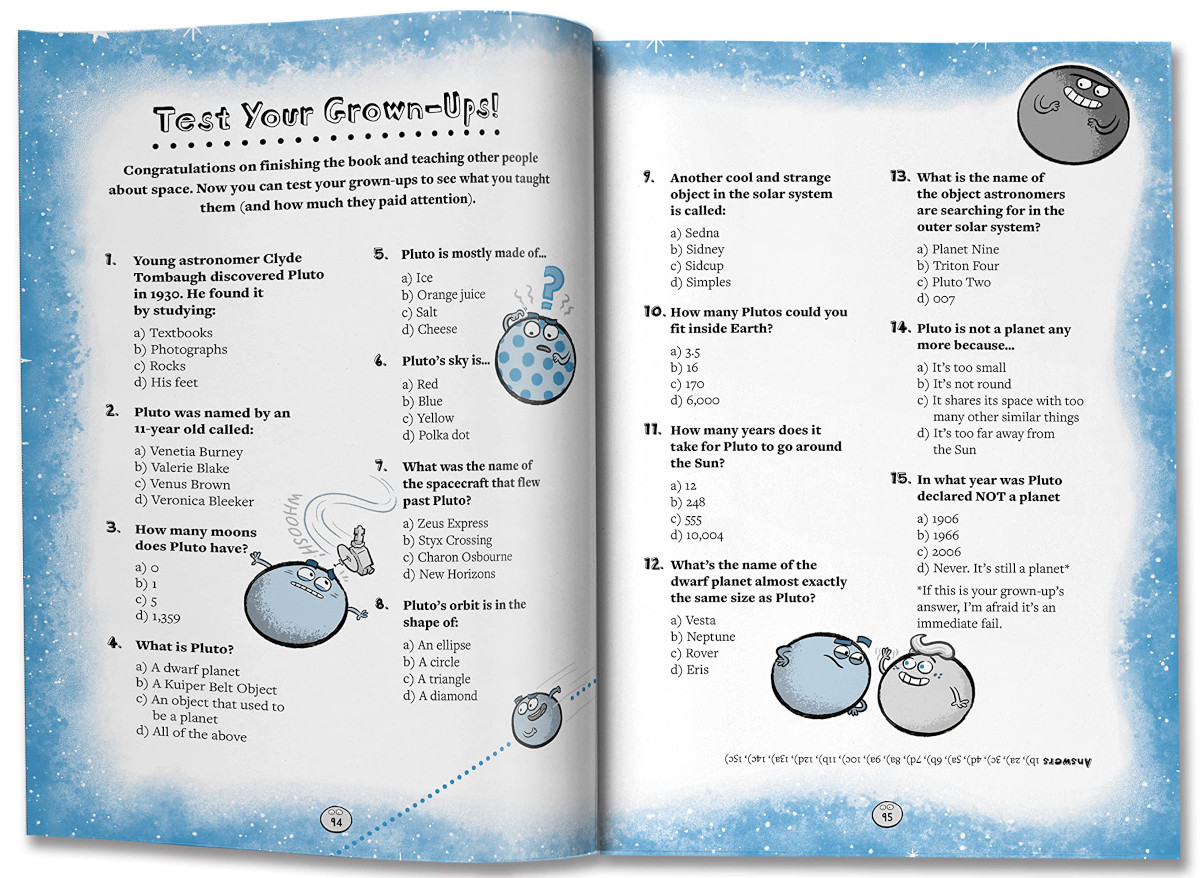 How to Teach Grown-Ups about Pluto uses a relaxed style and cartoon-style graphics to entertain and teach us about all things Pluto. As well as that, learning about Pluto means absorbing all sorts of fun and interesting astronomical information along the way.