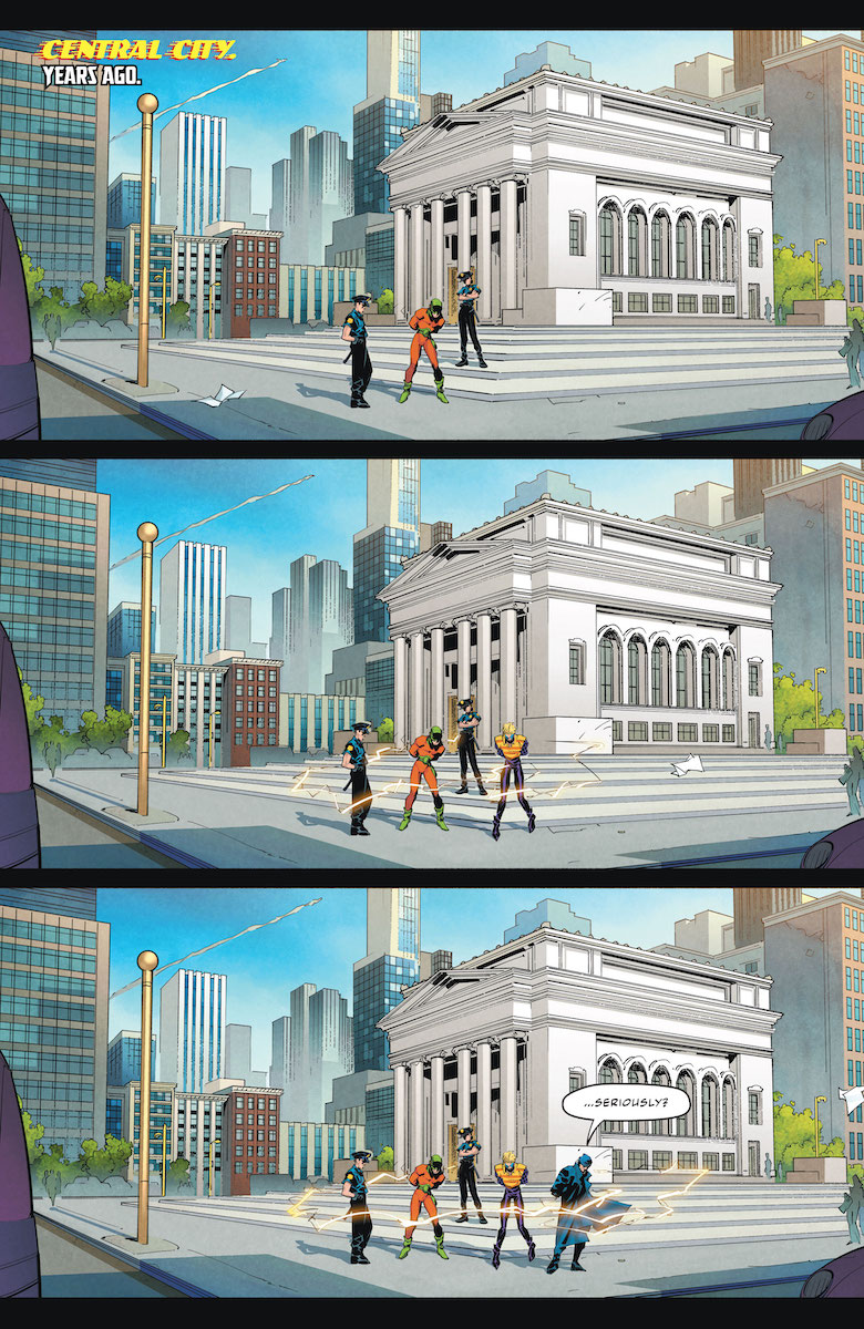 “Cold Shoulders,” by Ryan Cady and Gleb Melnikov, is a fun old-school adventure set early in Batman and the Flash’s careers. With Captain Cold missing from the Rogues’ latest heist, Flash tracks him to Gotham—where he’s been hired by Mr. Freeze to aid him with a potentially apocalyptic cryogenics experiment. This story is all about contrasts—Flash’s high-speed investigating bouncing off Batman’s methodical detective skills, and Cold’s businesslike villainy for hire clashing with Freeze’s increasingly unstable obsession. This particularly feels like a callback to some of Cold’s earlier characterization, and it’s a fast-paced story that delivers on exactly the vibe it’s going for.