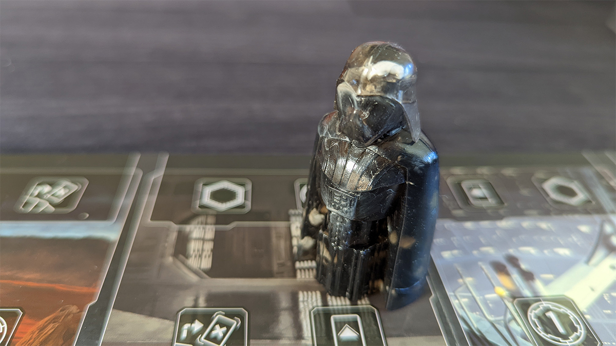 Grievous’ mover is off-white with the general’s mask supported by his lightsaber collection. Ventress is purple and, like the character, almost unusually skinny (it is perhaps the skinniest of all Villainous movers) with her curved sabers strapped to her back. Gideon’s deep red mover invokes the character’s haughtiness from the series and features the handle of the Darksaber. Kylo is a darker red, with his mask and unique lightsaber making up the shape of the piece. And with Vader, the designer managed to combine most of the familiar elements of the character, from the mask and chest plate and cape to his lightsaber.