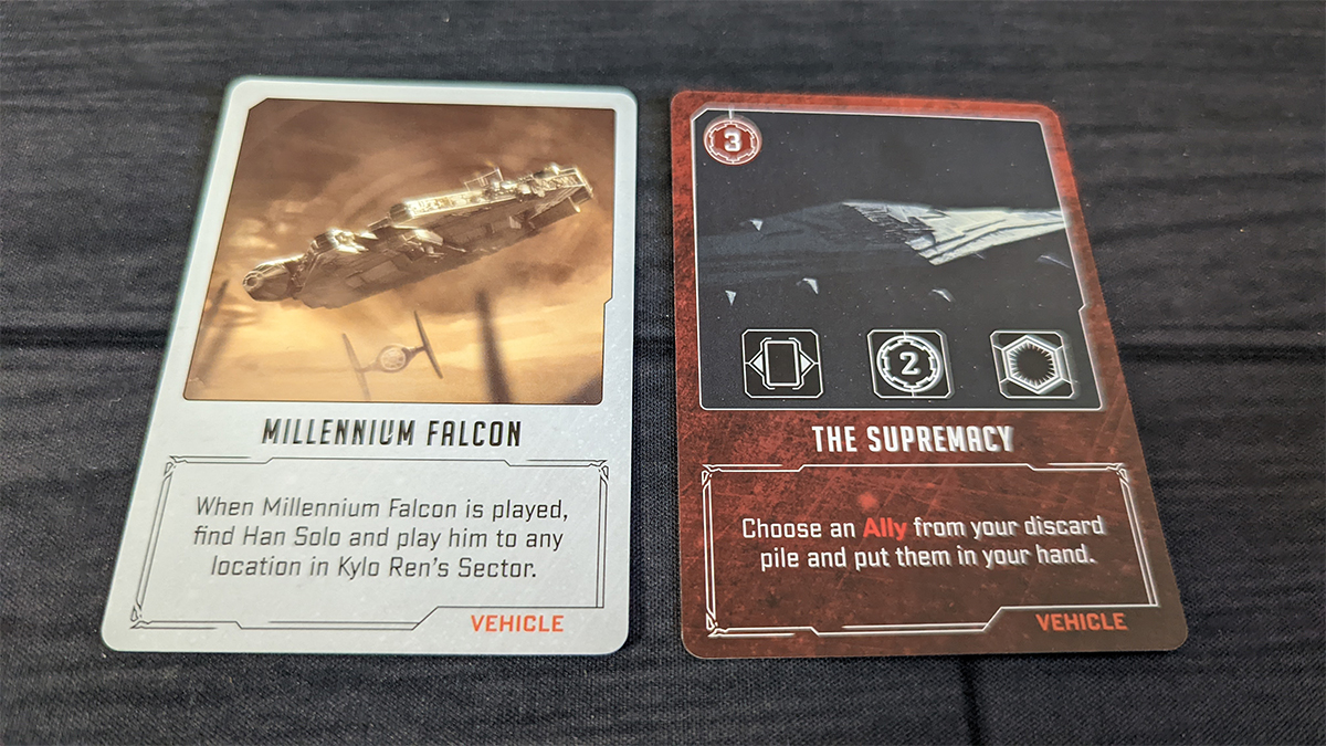 When a villain plays one of their own vehicles in Deep Space, it becomes a location that they can move to and perform actions. Each vehicle also has a special ability that is triggered when a villain moves there, which basically makes up for the fact the allies and other cards cannot be played there. Even cooler: multiple vehicles can be played in Deep Space, providing even more locations.
