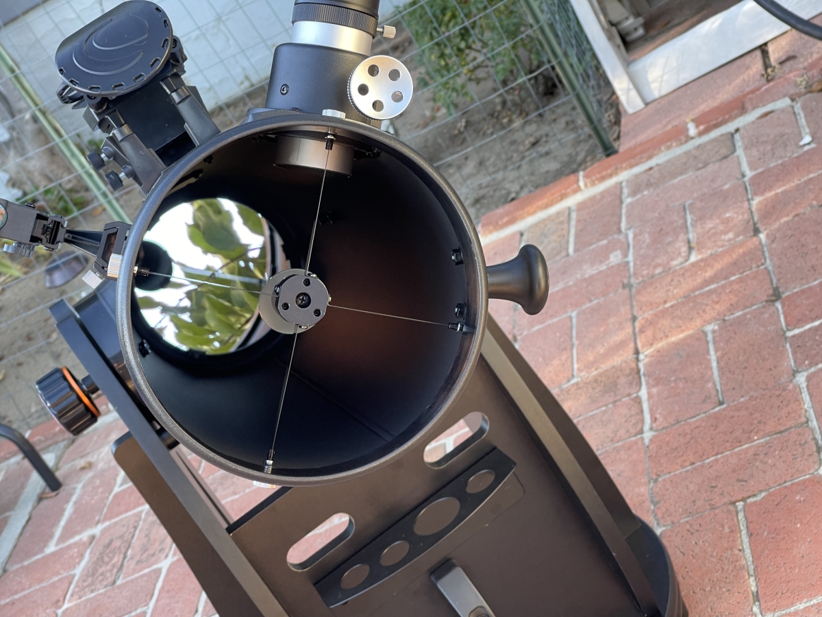 Collimation is the proper alignment of the optical elements in your telescope. In the case of the 8″ Dobsonian, the mirrors can get out of alignment, especially when transporting the telescope from location to location. When the mirrors are out of alignment, the image can become distorted.