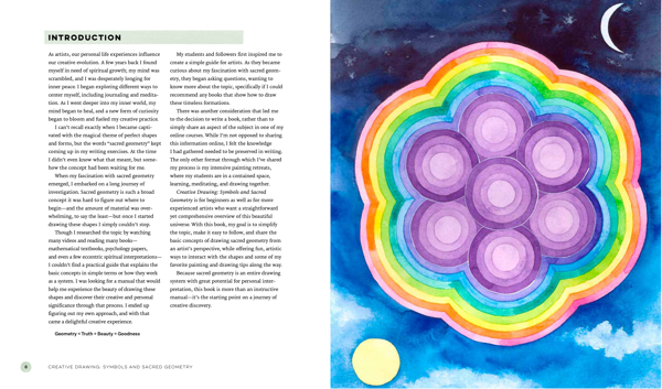 As she says, this is a beginner’s guide to geometry deemed sacred by a variety of cultures across time. Sacred geometry has been practiced and celebrated by cultures worldwide and has influenced artists throughout history. The motifs are a familiar part of the landscape, be it ancient constructions, coins, tiles, or modern artistic design.