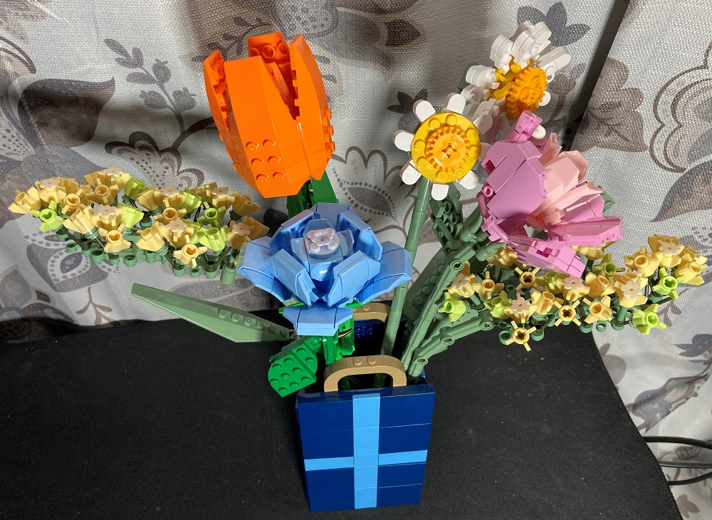 The Rose set is made up of 633 pieces and is also suggested for builders 14 years and up. Unlike the Butterfly Orchid, this set consists of seven different models, each with its own instructions. The pieces for each model also come in separate bags, so you only need to open the bag for a specific model at a time. What is interesting about this set is you build the container, which looks like a gift bag, and then you build each flower individually. The flowers and greenery can then be arranged inside the container however the user wishes. As such, this one allows for a bit more creativity and personalization of the final display. The Rose building set can be purchased from the JMBricklayer site or from their store on Amazon for a suggested price of $36.99. It also has codes for Black Friday and Cyber Monday of 30% off, making this set only $26. The Amazon code for this deal is VIPMichael30.