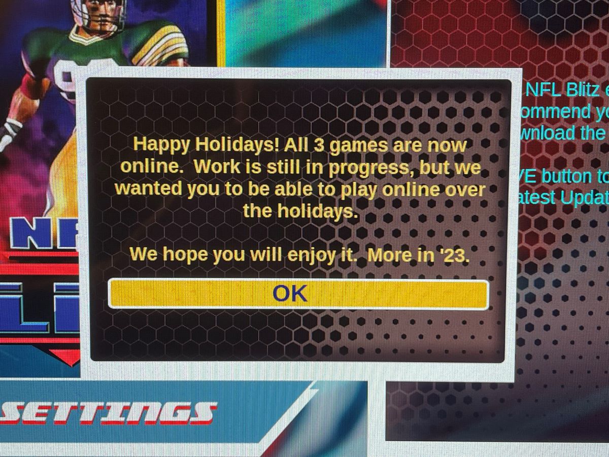 When you first connect your NFL Blitz Legends Arcade Game, you’ll be greeted by this custom Arcade1Up screen animation: