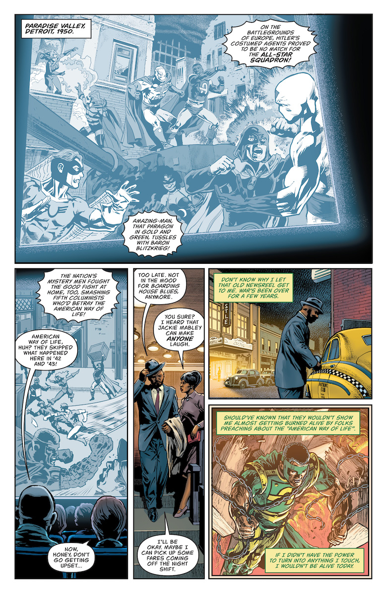 Evan Narcisse and Darryl Banks kick things off with “Black Paradise,” reinventing the character of Amazing Man. DC’s first Black Hero, the JSA member is now a retired man living in 1950s Detroit as gentrification ramps up and a white supremacist vigilante starts terrorizing the community. This is a really smart story, fusing elements of real history with one of the more forgotten heroes in DC’s lore. This has some shades of the excellent Watchmen TV series, and I’m hoping it’s a preview of Narcisse getting to write more of this character.