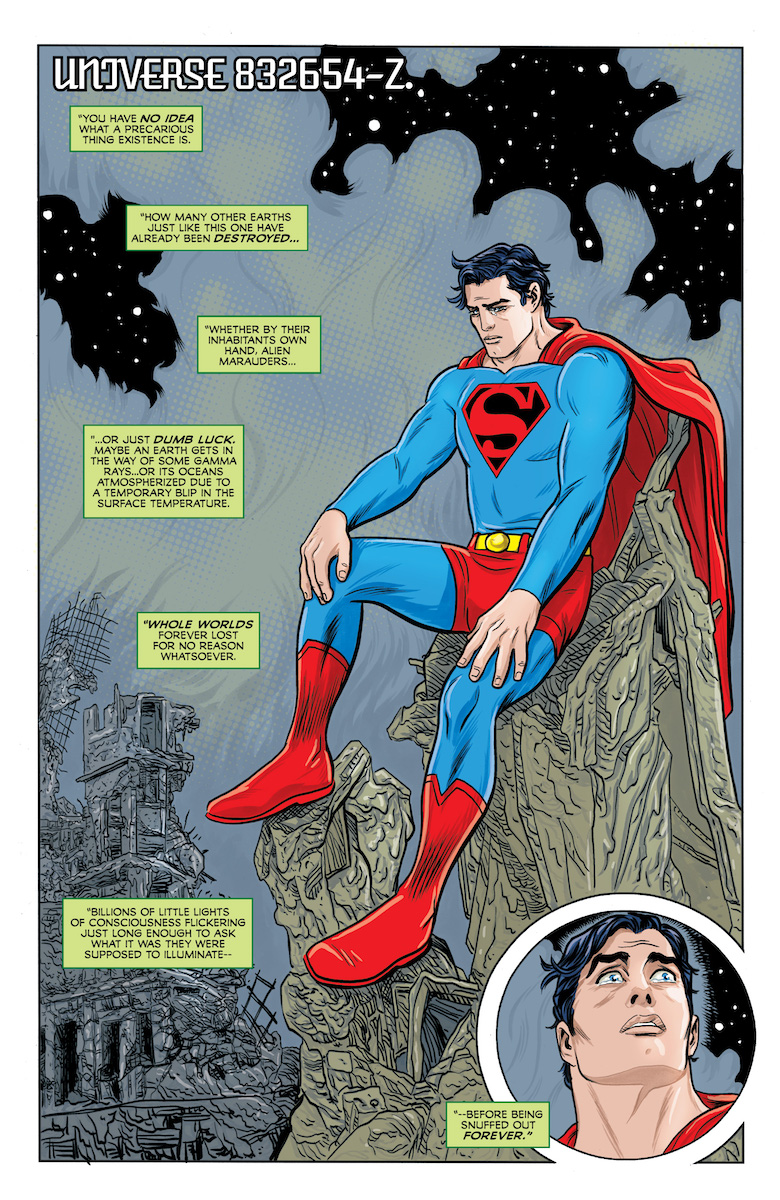 The only area where I have to knock off a few points on this finale is the Batman subplot, which introduces a more tragic version of the Joker that seems to indict Bruce Wayne—giving him a Tony Stark-esque tragic story. It’s an extended and grim subplot that takes up a lot of space in an issue that has to bring a close to one of the most fascinating alternate universes I’ve ever seen. The visit from Pariah in the beginning raises the stakes, and then the last twenty pages take us on a wild journey as Superman pulls off the ultimate feat and makes an unfathomable sacrifice to ensure his world lives on. This issue had a few more hiccups than the previous two as Russell brought it in for a landing, but the whole story will go down as an all-time classic.