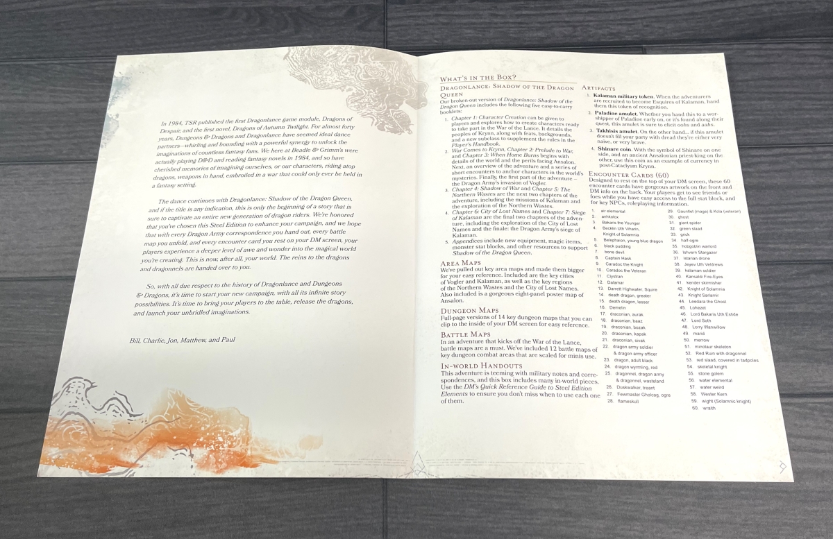 Like the smaller Beadle & Grimm’s Silver Edition boxes, the Steel Edition of Dragonlance: Shadow of the Dragon Queen comes complete in a single box. Here’s a list of the contents: