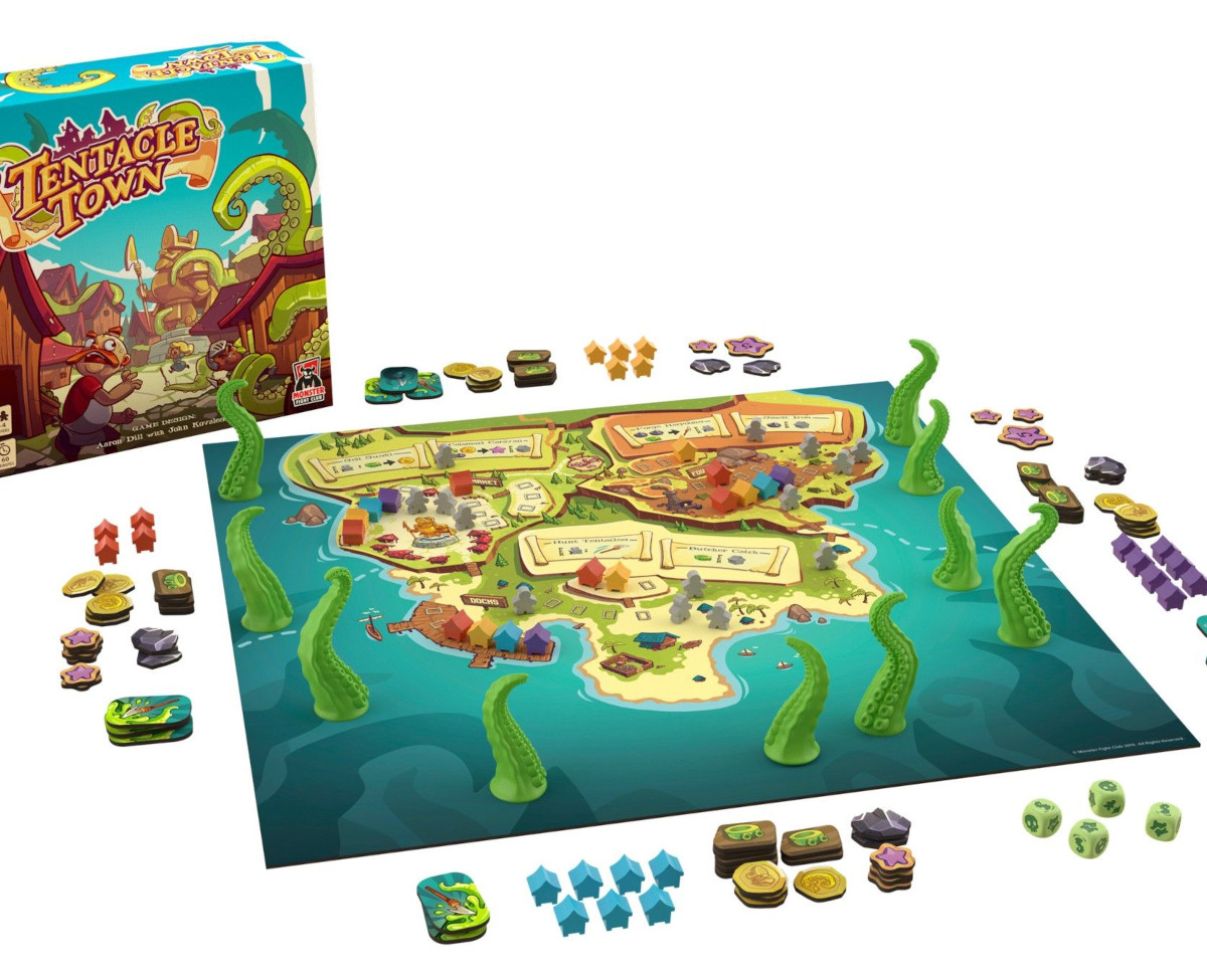 For as long as there have been oceans, there have been tales of sea monsters. Here on Tentacle Island, you’ve just arrived, and are vying to become the most famous resident. How do you do it? By populating the island and fighting off the tentacles, of course! Tentacle Town by Monster Fight Club is a cute little worker placement game that offers players the opportunity to fend off squishy tentacles and do many other tasks in an attempt to gain more fame than anyone else.