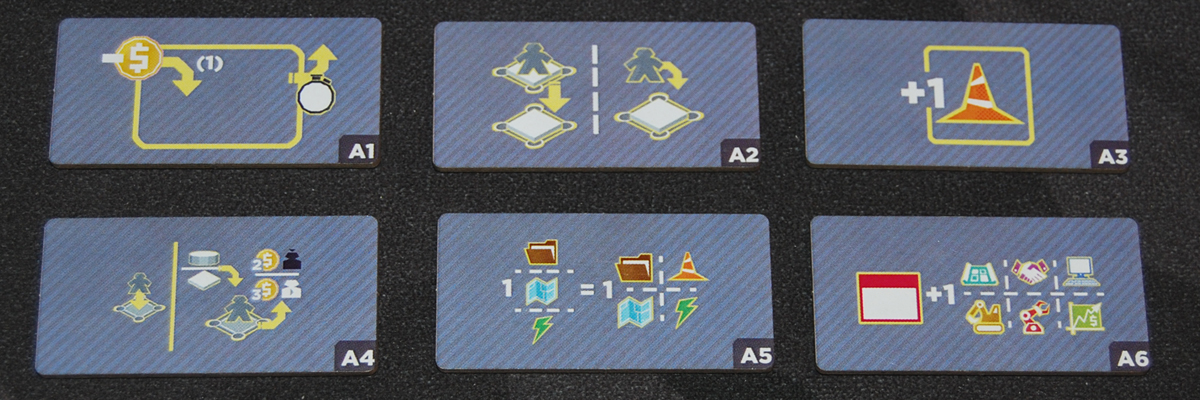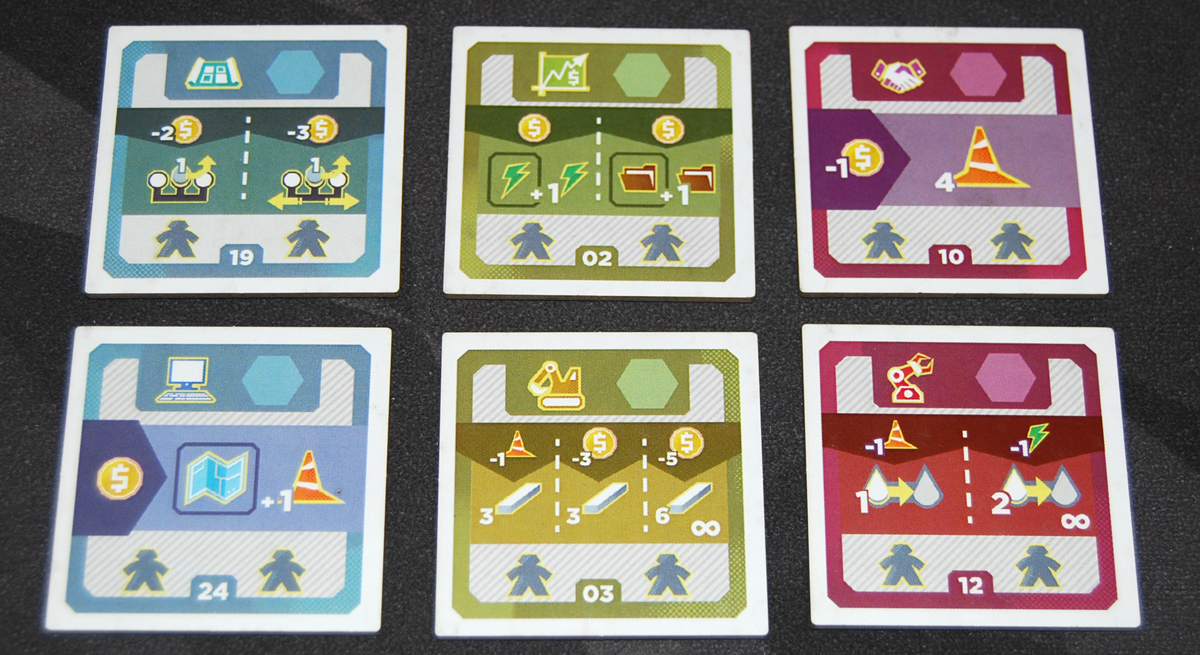 All of the actions use iconography rather than text, which can be good for language independence but may take a little getting used to. Fortunately, there’s a reference book, and all of the development tiles, upgrade tiles, and project cards are numbered so you can easily look one up if you’re not sure what it does.