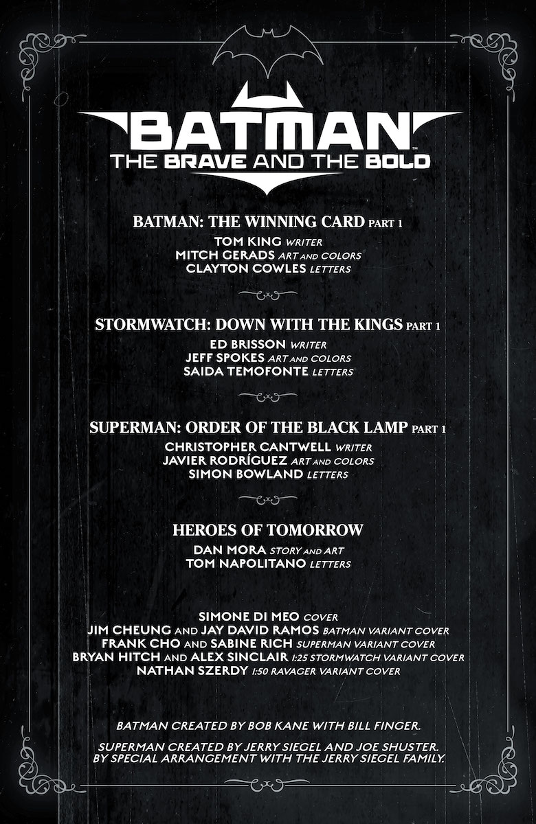 Batman: The Brave & the Bold #1 – Tom King, Ed Brisson, Christopher Cantwell, Dan Mora, Writers; Mitch Gerads, Jeff Spokes, Javier Rodriguez, Dan Mora, Artists