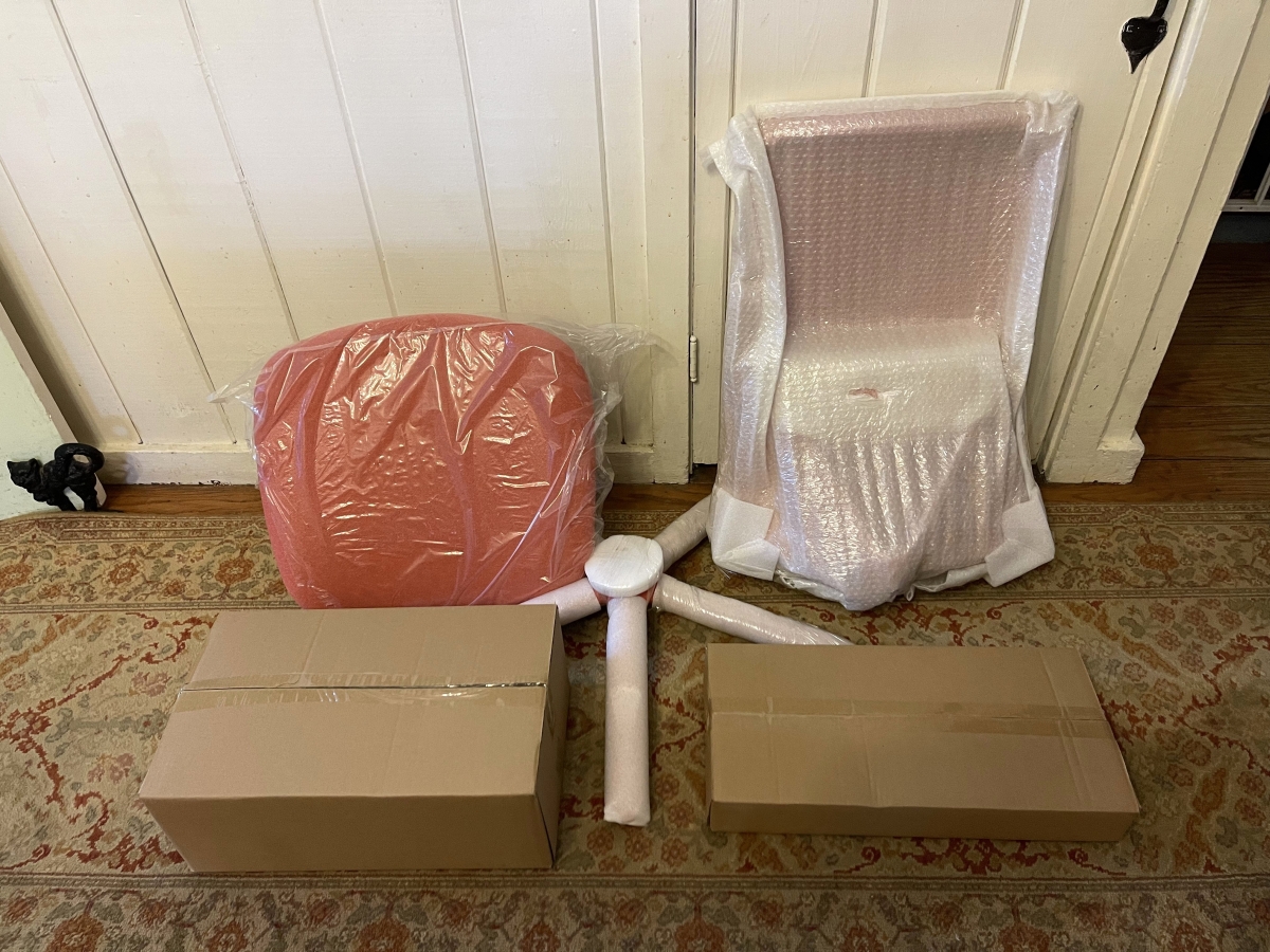 You get a pretty sizeable box, which is no lightweight either, as the chair weighs 40 lbs. Everything inside is packed securely, either in additional boxes or wrapped in foam.
